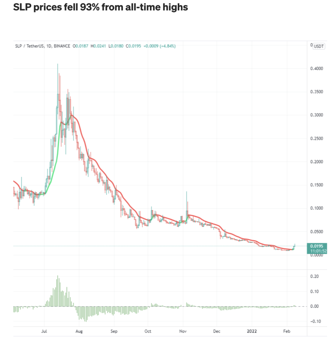 Axie Infinity 的收入波动过大,已跌为峰值的10%以下