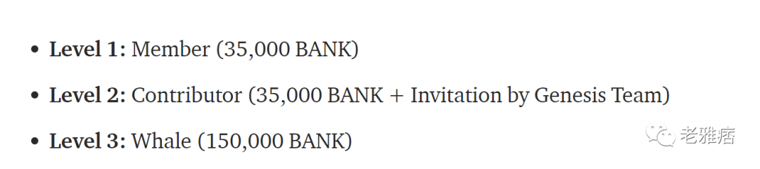 BANK代币本身是没有价值的,其代表的只是成员对社区的贡献和参与程度而已。BANK没有被销售,背后也没有投资人,只有参与社区活动的成员才能得到BANK,并且,参与社区活动是获得BANK的唯一方法。而怎样才算参与社区活动则需要BanklessDao的成员通过投票来决定。