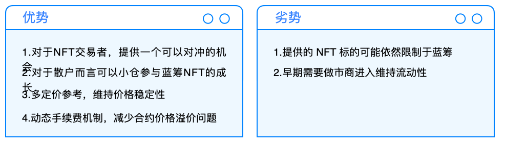 NFTperp 这种设计专门服务地板价客群,同时也让小散有可以碰到蓝筹 NFT 多头的空间,在当前的 NFT 市场中可以促进生态流动。
