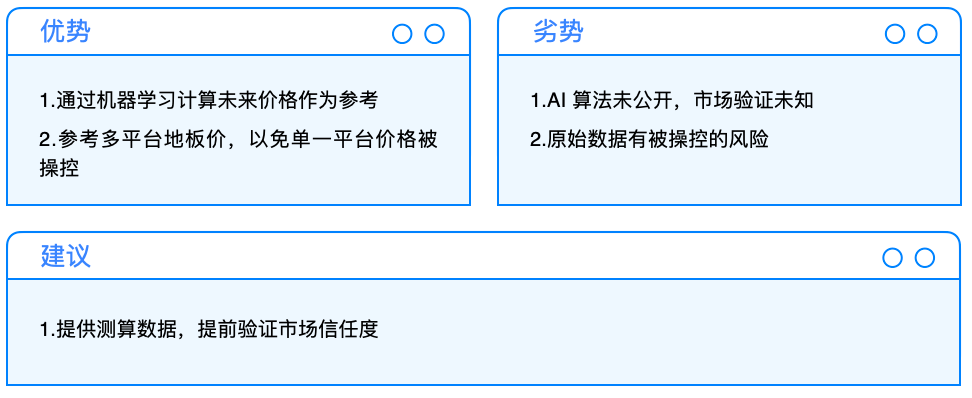 Banksea 针对价格计算的演算法是将价格在一定区间的波动作为变量,计算出最适区间,然后再依照项目对于大盘与其他指标的相关系数计算出beta,并作为风险因子计算抵押率。详细算法内容未公开,因此是否能够体现真实市场反应还需要等待后期市场验证。