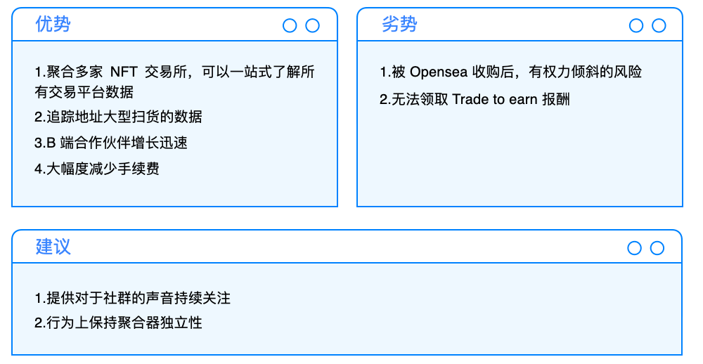 严格意义讲聚合器并不属于 NFTFi 范畴,但却是在早期可以让 NFT 流动性与可见度大幅度上升的重要基础设施,遂在此提出。