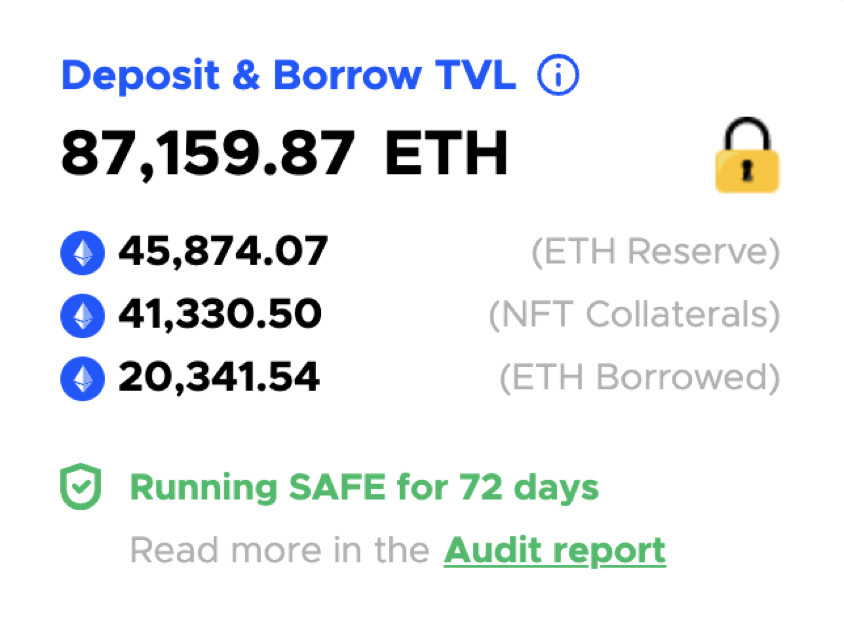 目前 BendDao 的总 TVL 为 87159.87 个 ETH,约为 1.74 million USD。
