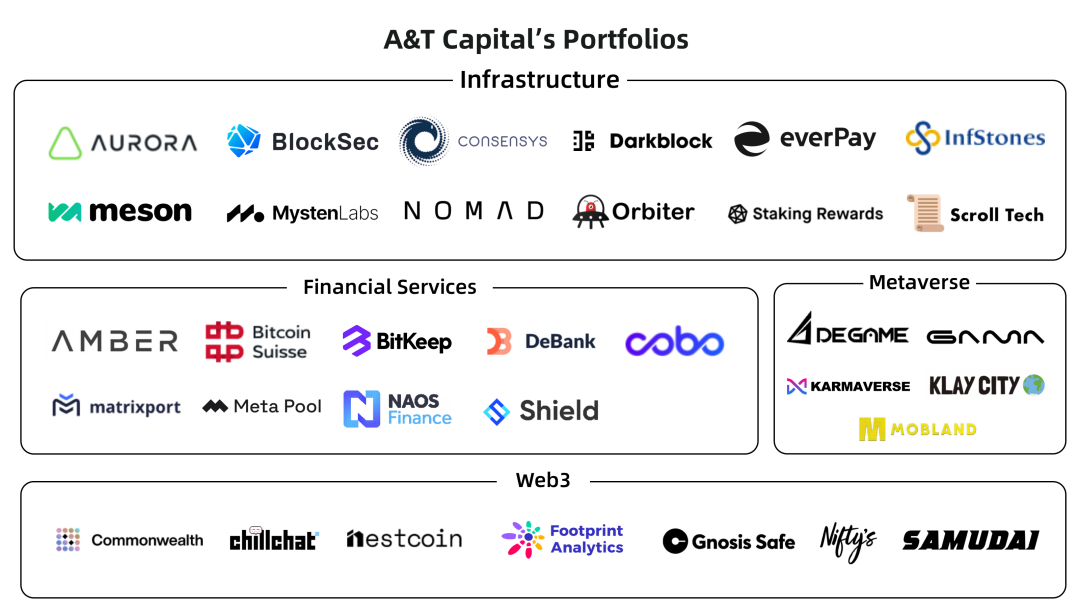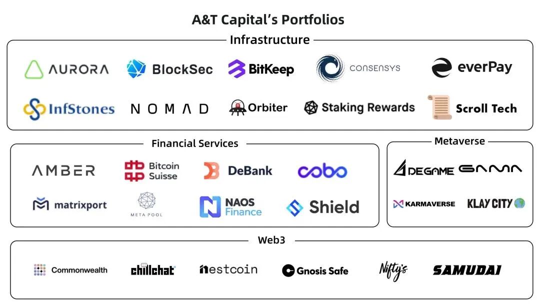A&T Capital是一家针对新兴颠覆性技术的风投基金。基金专注于支持早期到成长阶段的初创公司。背靠5家金融技术Decacorn(100亿美元以上的估值),分布式记账技术早期支持者以及一批经验丰富产品负责人,A&T Capital在推动下一代去中心化数字时代的初创企业进行大规模落地上具有独特的优势。