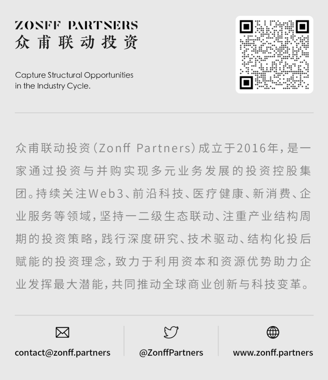 注:文中提及项目,均不构成任何投资建议。文章仅代表作者个人当下观点,不能代表 Zonff Partners,文中所发布信息及观点有可能因发布日之后的情势或其他因素的变更而不再准确。