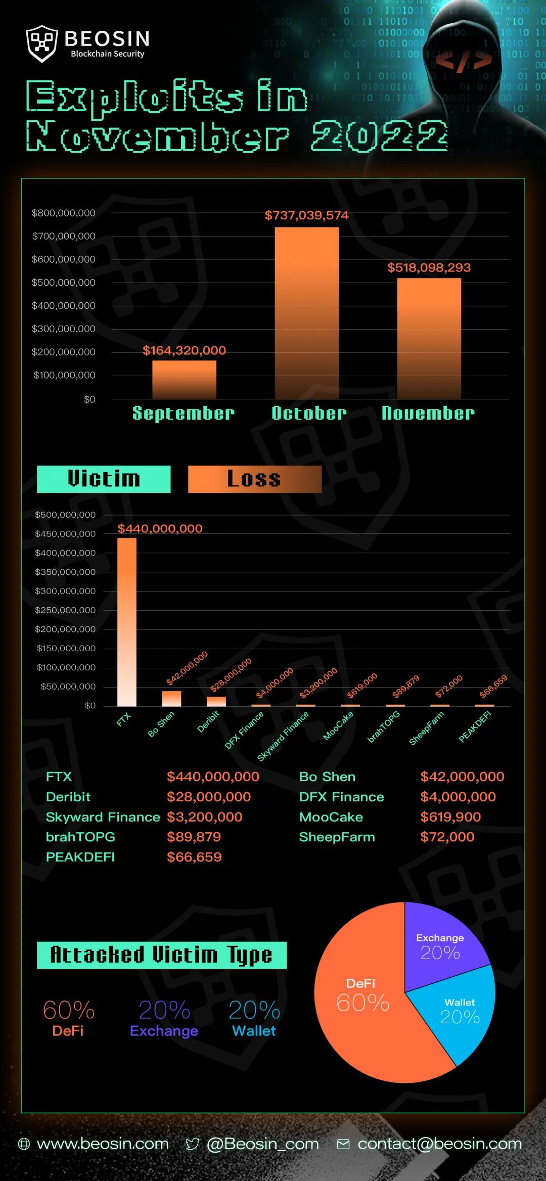 Beosin盘点 | 黑客依旧嚣张,11月区块链生态损失总金额超5亿美元!