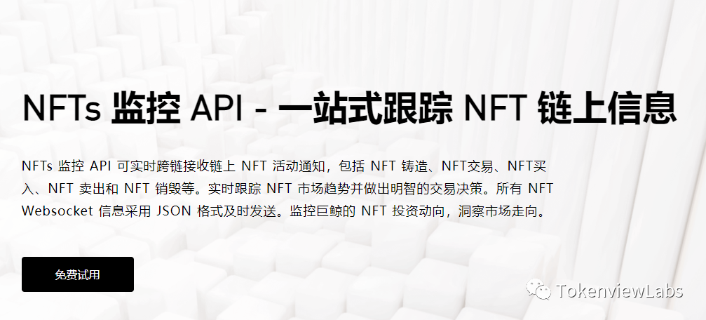 Tokenview.io推出NFT交易监控数据服务。一站式跟踪NFT链上信息,可使用APIKey一键配置,帮助WEB3用户简化产品构建。