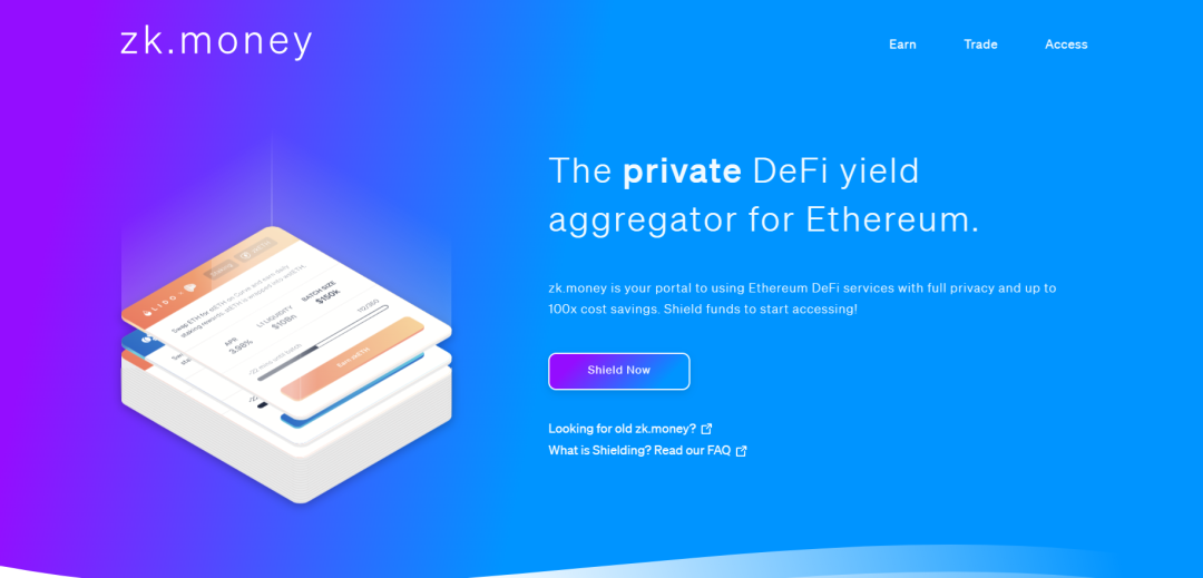 Zk.Money 是 Aztec Network 的第一个应用,发布于 2021 年 3 月。旧版 Zk.money 只能实现简单的转账支付,使其内的资金可以完全私密地发送到另一个 Aztec 账户或提币到 Layer 1,但仅支持 ETH,DAI 和 renBTC 等少量资产,以及一次 5 ETH 或 10000 DAI 的交易上限。用户将 zkETH 或 DAI 发送到 Zk.money 上的用户名(@name),收件人将获得 zkETH 或 DAI;而将 zkETH 或 DAI 发送到 Zk.money 以外的任何以太坊地址,钱包将收到常规的 ETH 或 DAI。Zk.money 官方宣称自推出以来拥有超过 75,000 名注册用户,超过 22.5 万笔交易和 8000 万美元的总交易,同时比现有的隐私转账协议费用便宜 96%。