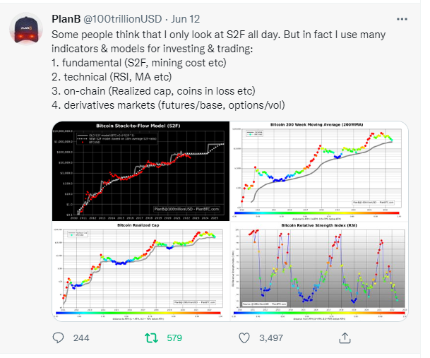 近日推特 KOL PlanB 例举了自己除了熟知的 S2F 以外常用的辅助决策的几个指标模型,鉴于当前波动较大的行情走势以及暴跌后的抄底情绪,我们将这些指标模型展开介绍,以供参考使用之需。