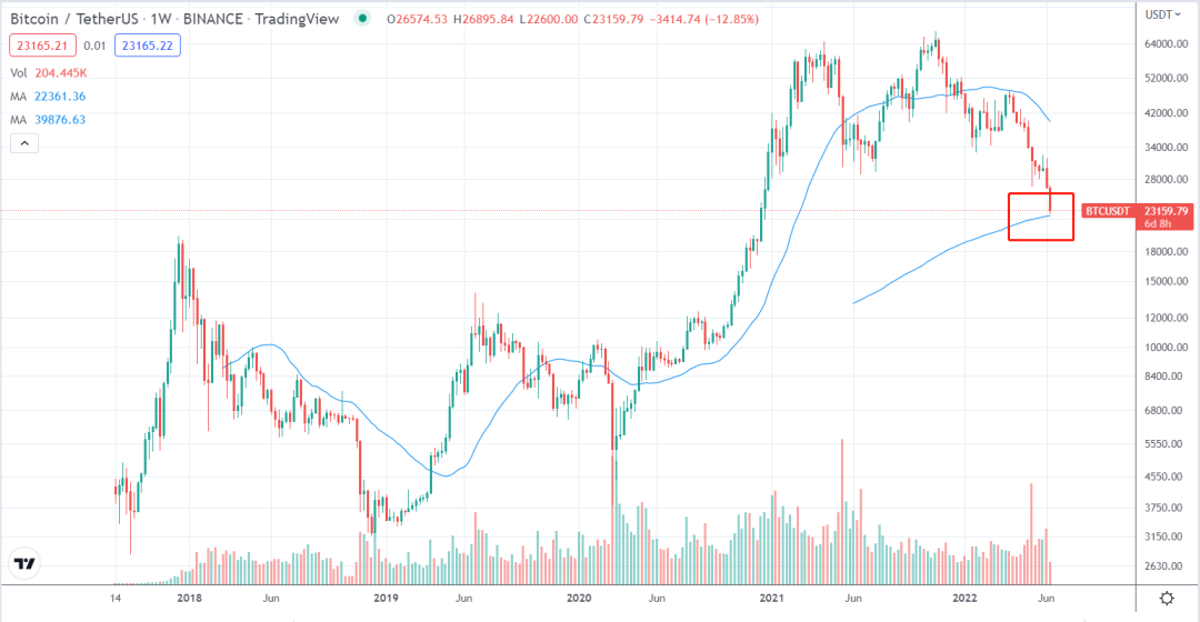 值得一提的是,此前投资机构 placeholder 的合伙人 Chris Burniske 曾表示将 BTC & ETH 的 200 周 K 线 MA 视为重要支撑,并预期有可能跌破该支撑位。而随着近日的暴跌,BTC & ETH 已经来到了该支撑位。