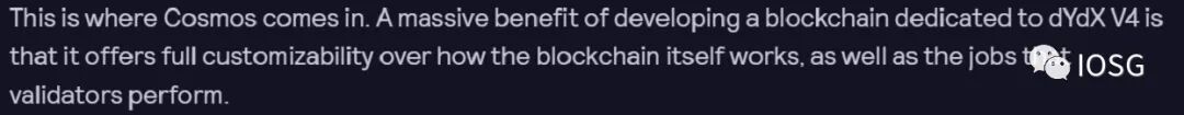 很有意思的是,blog中援引的原句是off-chain且decentralised,但是基本能做到既off-chain又decentralised只有依赖zk技术,所以是否未来dYdX会完全脱离starkware,乃至于回归同样zk派系的zksync也是一个问号。亦或者去cosmos上搭一条zk链,但是不太符合逻辑。