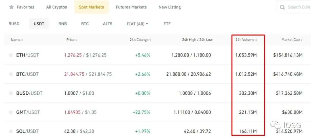 Binance spot market trading volume