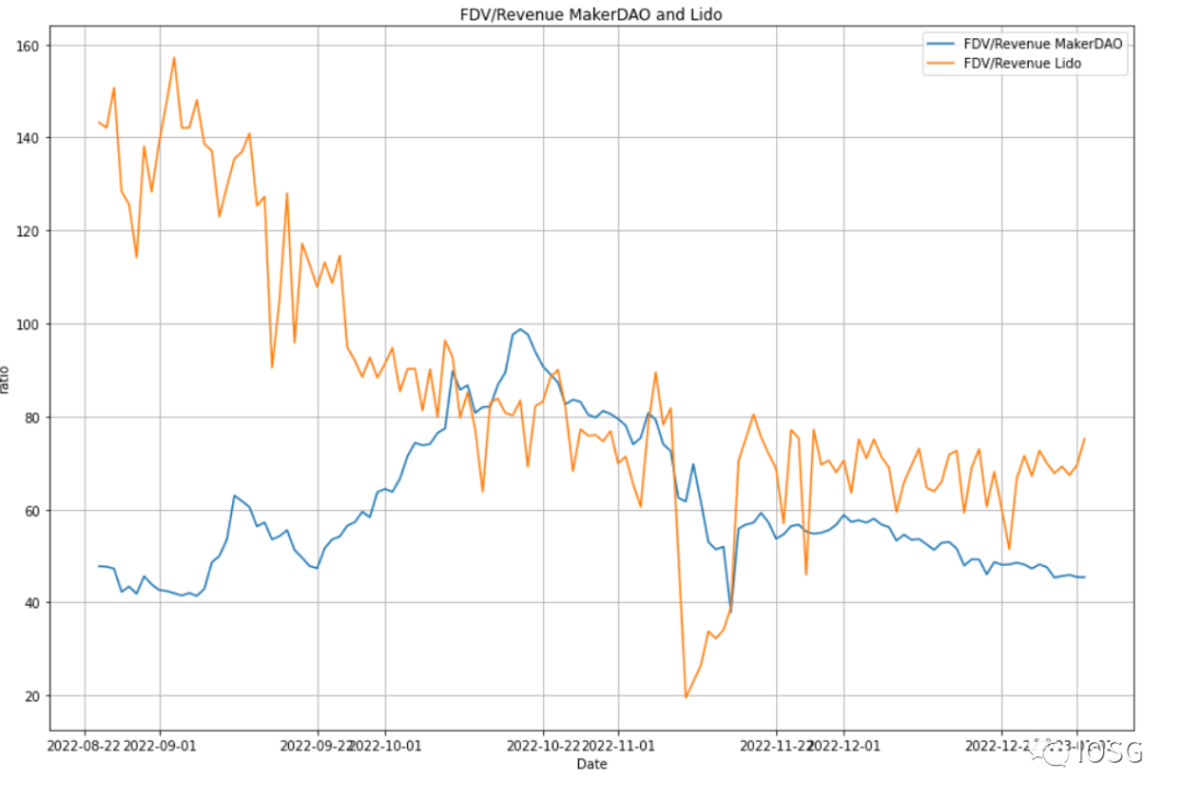 虽然 Lido 高度依赖以太坊基本面,但我们可以看到,即使由 ETH 支撑价值,Lido 也经历了显著的波动。这可能是由于市场重新定价了 Lido 在以太坊生态系统中的定位以及 LSD 垂直市场的估计市场规模。