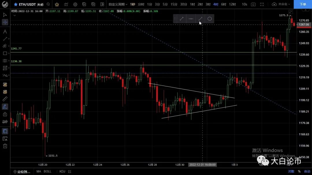 以太坊昨日整体波动不大,直到晚间行情下行插针至1236附近支撑迅速反弹,随后行情一路上行最高触及1275一线承压回落,恭喜跟上昨日思路的朋友多单获利35点,目前币价在1265附近运行,小时级别多头逐步缩量双线聚拢有死叉迹象,k线连阴跌至ma7下方,短期来看行情处于高位有回踩需求,关注1260支撑情况,四小时级别行情震荡后延续多头走势连阳上行,短期多头滞涨连阴回落,ma7向上指引,macd双线粘合震荡,目前行情只是反弹并非反转,上方阻力较为明显,高位不建议追多,短线以回踩做多为主,上方压制1280-1310,下方支撑1260-1240