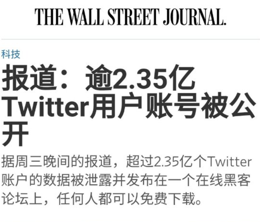 推的2.35亿用户账号被泄露,里面包括账号名称、句柄、创建日期、粉丝数量、和电子邮件地址,而且任何人都可以免费下载。最主要是邮箱的隐患,如果注册推特的邮箱也被你注册过墙内的网站,你的实名就会被匹配识别出来。如果手机号泄露了,那更麻烦,你会受到各种钓鱼短信,所以最近用推特的朋友注意识别各种诈骗信息,年底了注意自己的口袋。