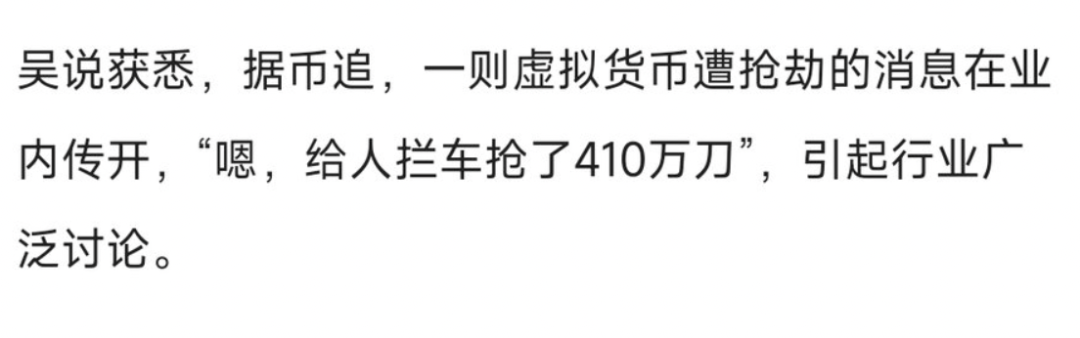 然后有趣的事发生了,说是一个平时挺高调的大哥参会结束给人摁车里了,用面部识别解锁了手机和钱包软件,直接把他钱包里的410万美元数字货币给换成了USDT转走了。