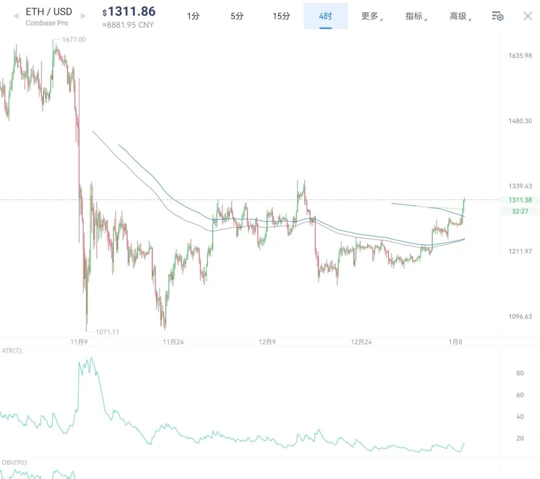 以太坊今日来看,向上突破了1300美金位置后,上方相对来说打开了一定的空间,但并未出现放量继续拉升的情况,因此软绵绵的这种走势在我们之前的提前分析中已经讲过该怎么处理,后续如果跌破1280位置短线则立即退出观望,虽然上半年的机会很多,但走势必然会有很多套路,因为在币圈的底部形态中,经常性的会走出上下插针画门行情,所以没必要那么紧张会踏空,不要好久没来行情了,一来行情就紧张,后续操作按照上半年有大行情来处理,然后按部就班从小级别一步一步做,有大预期,但是操作上重视短线。