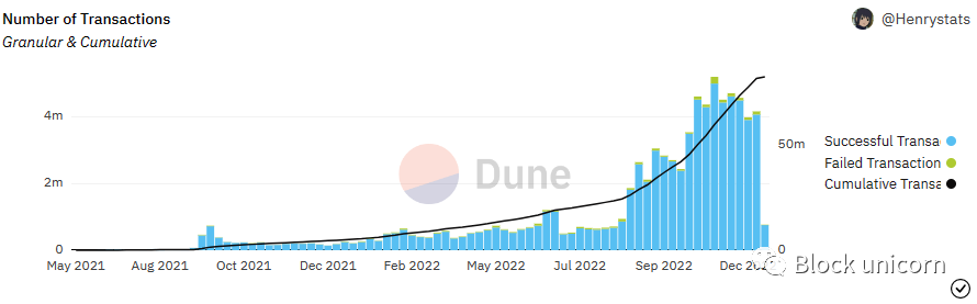 另一个积极因素是一些现有区块链用户留存率,那就是Polygon。尽管市场形势严峻,但全年Polygon的日交易量仍远高于200万笔。这证明了他们与迪士尼等品牌的合作关系,以及DeFi和游戏应用程序不断增长的生态系统。期待来自Polygon的更多信息,因为他们准备推出自己的Zk-rollup兼容EVM。