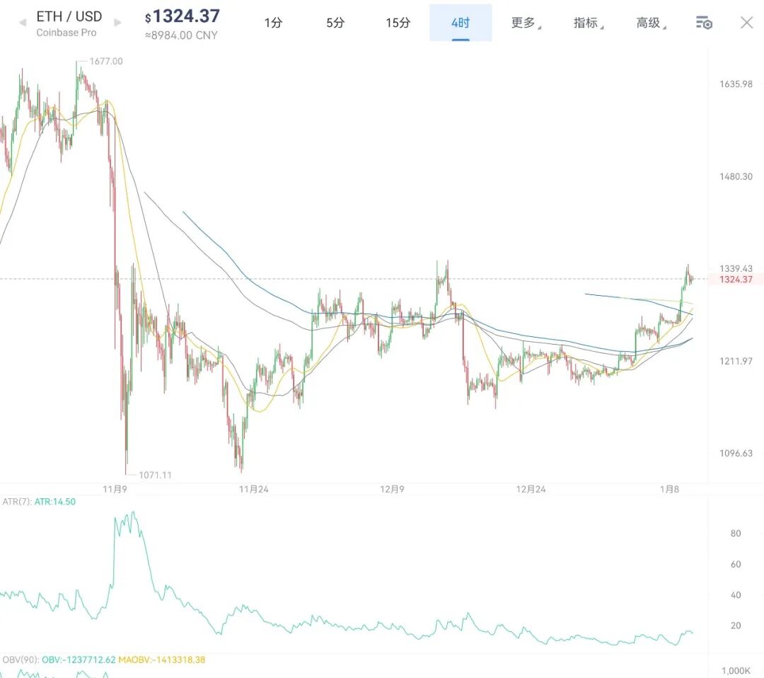 以太坊今日来看,15分钟级创下一个新高后,但并未突破1350位置,同时打出了背离,之前讲到以太坊的强关联币种如果向上突破的话,则有可能带动以太坊向上突破,目前来看,以太坊的强关联币种大多都在调整中,并没有力量可以再次推动以太坊向上,所以短线开始变得不确定起来,如果以太坊的强关联山寨币种都开始了调整,那么以太坊也会跟随调整,所以如果你手里的山寨币比较多的话,建议减仓一些,因为短线并不是说很确定还会继续拉,1280位置减仓可能会让你的山寨币跌很多,不如提前先减仓一些。