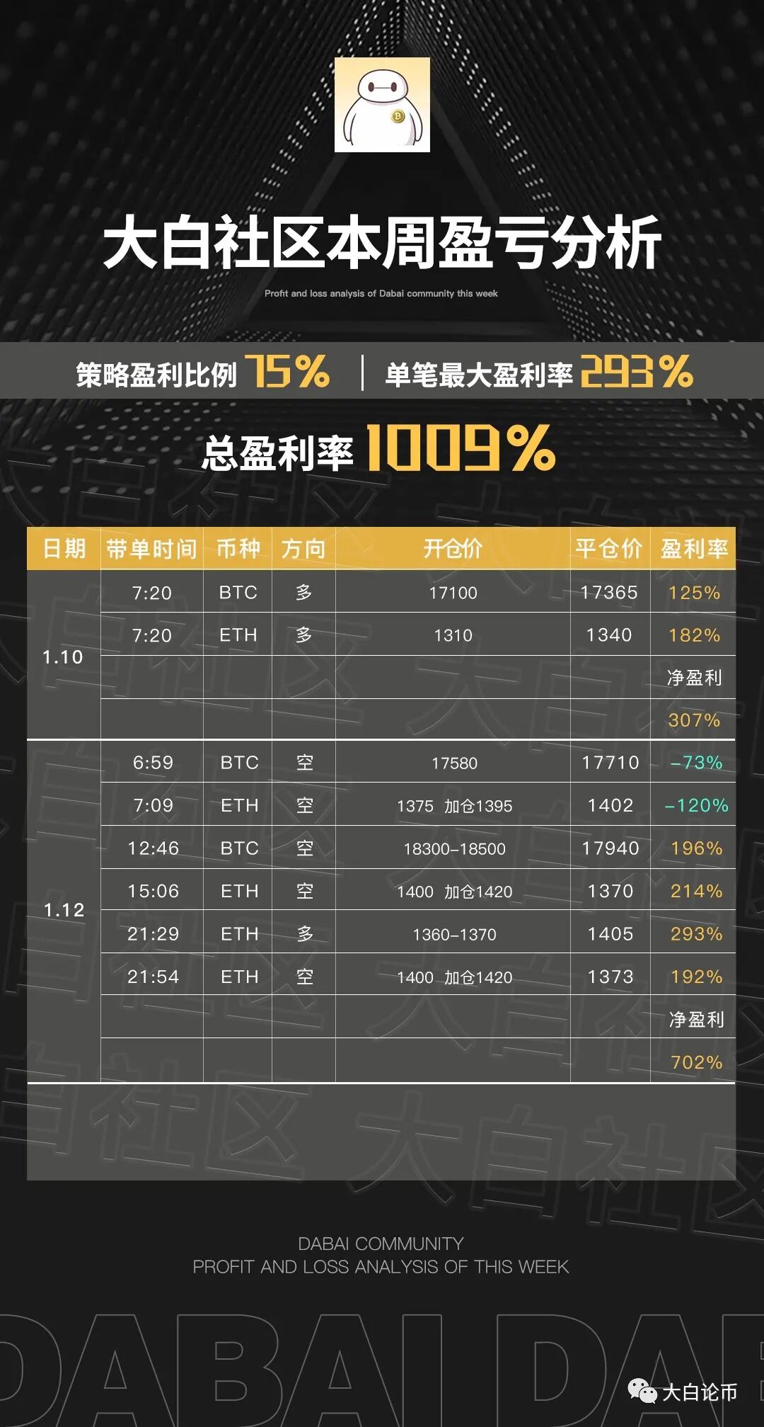 下方是大白社区本周实盘群单子,恭喜跟上的币友,如果你操作不顺,可以来试试水。