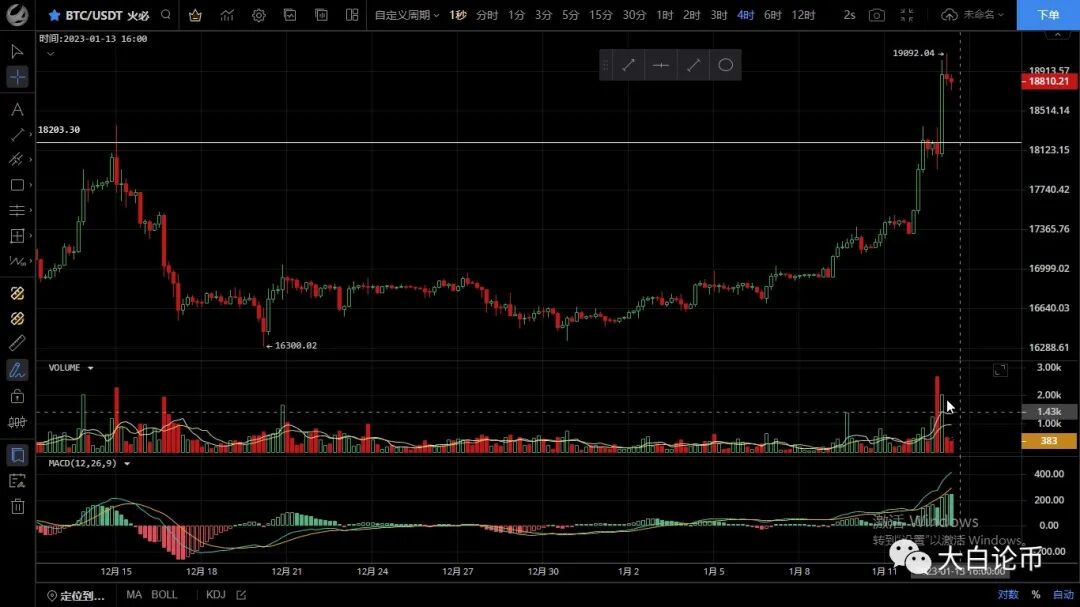 大饼昨日整体在18000上方运行,晚间cpi数据公布行情向下插针随后再次回落形成M顶但未延续空头走势,行情跌至17940附近支撑反弹,凌晨多头发力直线拉升且走出延续最高触及19100附近承压回落,近期思路坚持看多也收获不少利润恭喜跟上的朋友,小时级别多头逐步缩量双线粘合有高位死叉需求,ma7均线拐头向下,短期行情陷入高位震荡整理,近期行情均呈震荡后冲高走势,多头具有延续性且回踩力度不大,四小时级别行情沿ma7一路上行,均线向上发散,短期走出单边多头,日内关注能否站稳19000,若站稳有机会冲20000关口,目前行情以处于高位切不可追多谨防大的回调,日内思路建议回踩低多为主高空为辅,上方压制19000-19300,下方支撑18600-18300