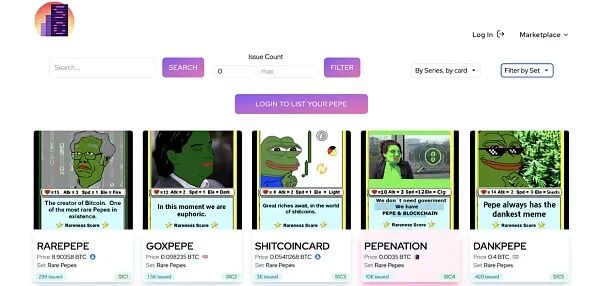 RarePepe 通常被认为是“加密艺术的诞生”,因为它们的起源是去中心化的。它们最初只是 Telegram 群组中的一个笑话,后来发展成为一个包含 300 多位艺术家和 1774 个 NFT 的收藏品合集。在 RarePepe 于 2016 年 9 月在 Counterparty 上发布后,社区意识到他们需要一个地方来存储和交易这些资产。作为回应,Joe Looney 推出了 RarePepe 钱包,已经上线,该钱包就成为了 RarePepe 收藏家的热门目的地。目前,RarePepe 可以在 pepe.wtf、 Scarce City、 XCP Dispensers 和 Emblem Vault 上购买。