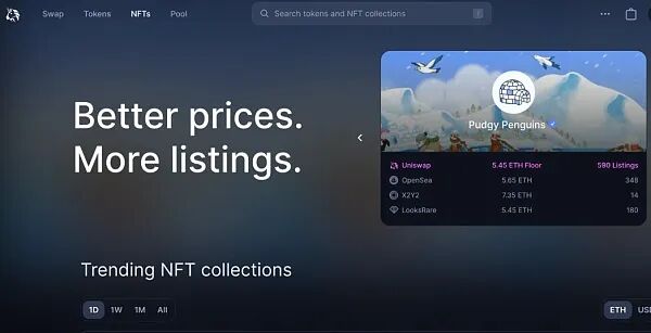 顶级去中心化交易所 Uniswap 于 2022 年 6 月收购了 NFT Aggregator 和 Floor Sweeper Genie,表明其进军 NFT 市场的意图。凭借其开发去中心化交易平台的经验,预计 Uniswap 将随着时间的推移成为顶级 NFT 市场。有迹象表明,Uniswap 将允许使用多个 ERC-20 代币购买 NFT,这可能使其在市场上具有显著优势。