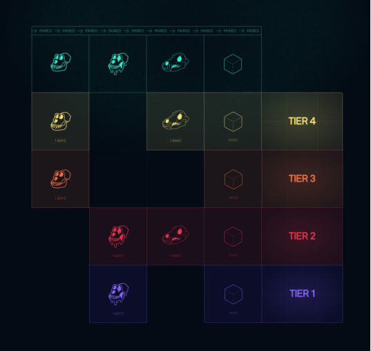 Sewer Pass(下水道通行证)是 Dookey Dash 的门票,共 3 万张。每位 BAYC 或 MAYC 持有者将可以在 1 月 18 日起至 2 月 8 日免费领取一张 Sewer Pass,同时持有 BAKC 则可以领取特殊级别的通行证,没有持有 BAYC 或 MAYC 二者 NFT 的玩家也可以从 Sewer Pass 持有人处购买获得。无论获取途径如何,任何拥有 Sewer Pass 的人都可以进行游戏。官方根据持有 NFT 系列的不同将 Sewer Pass 分成四个等级,TIER1 需要持有 MAYC,TIER2 需要同时持有 MAYC 和 BAKC,TIER3 需要持有 BAYC,TIER4 则需要同时持有 BAYC 和 BAKC。Sewer Pass 等级越高,将来获得的更好奖励可能性也会相应增加。