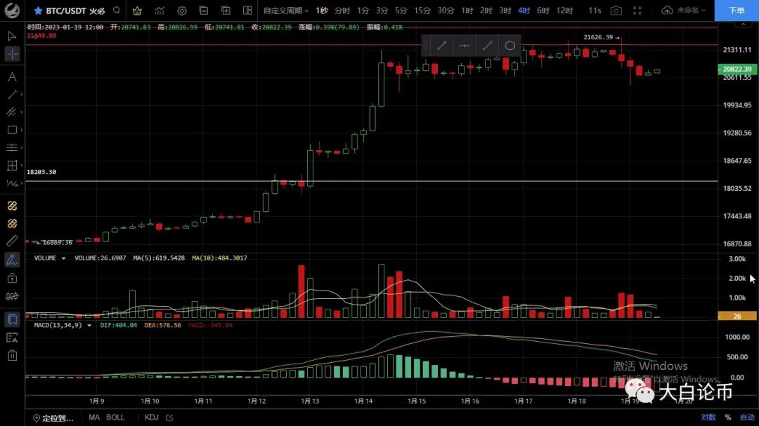 大饼昨晚再次破位前高至21626一线承压迅速回落,低位跌至20410附近,目前币价在20765附近运行,小时级别行情突破21500却未能站稳而回落,随后行情一路震荡下跌,短期20600有效支撑,空头力度减弱macd双线聚拢有金叉迹象,短期行情偏向震荡,四小时级别行情整体呈高位震荡,上下插针洗盘都未有效破位,ma均线拐头向下,macd空头运行双线死叉向下,技术面看短期走势偏向空头,下方关注20000关口支撑,这波下跌也是意料之中,所以一直提示切勿追高,目前来看每次破高上攻都无量,可以尝试抓顶,日内思路上建议逢高做空为主低多为辅,上方压制21150-21500,下方支撑20600-20300