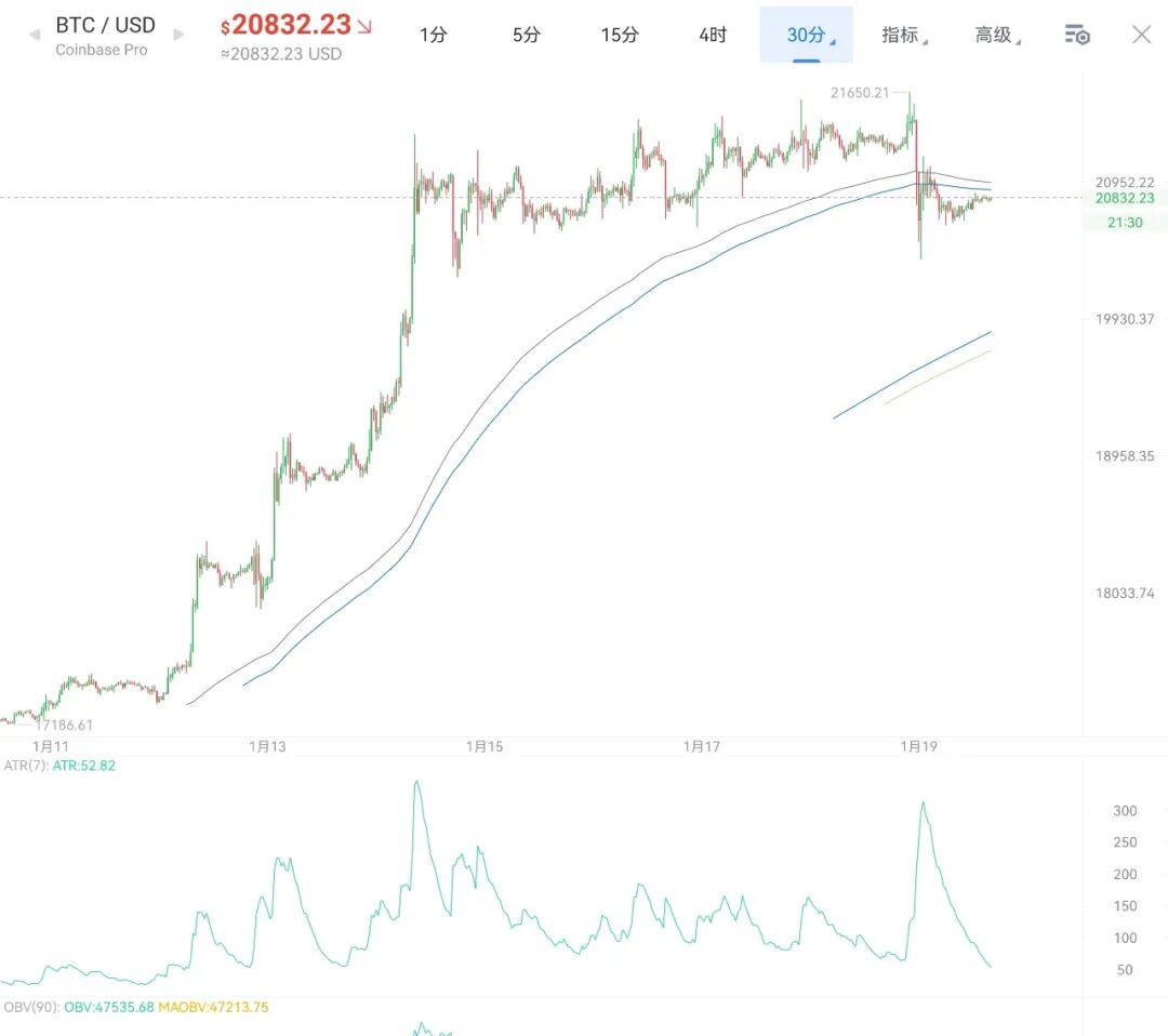 江百川:1.18震荡完毕,趋势成功打开,多点耐心行情分析:昨天市场再度以震荡收尾,而且日线形态是十字星,所以尽管新的5日线周期开启,可以继续上行了,但是仍然有一个小小的变量存在,需要大家保持耐心。可以看到下方均线最近的在20500美金左右,上行空间则是最...