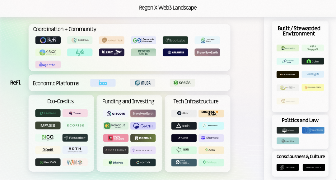 下图涵盖了当前已有的 Regenerative Web3 项目: