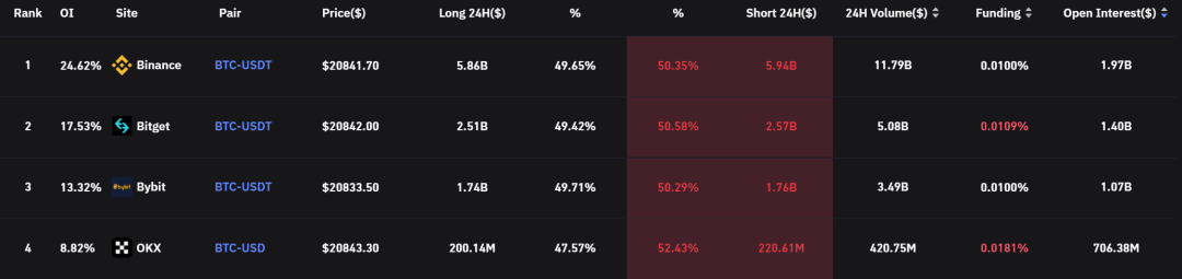 从 BTC 合约开仓量(Open Interest)可以看出,第二、三名有点出乎意料,这也印证了上文「CEX 排名轮转快」的特点。