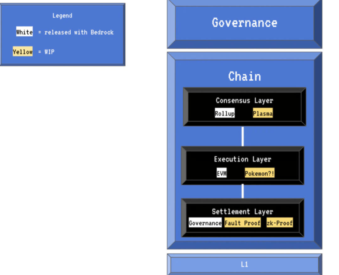 除了 Celestia 和 Fuel,近期 OP 正在向模块化发展,Op Stack 正在搭建一个(基于以太坊的)模块化基础乐高积木。