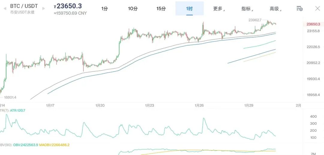比特币今日来看,市场向下调整了一段,在比特币跌破23000之后进入调整期,今日白天主要看的是23000这里能不能站回去,如果23000能站回去还有机会继续震荡向上,如果回不去则有可能继续进行调整,也就是说23000是一个比较重要的短期强弱分水岭,今天下午比特币已经走出了一个反抽形态,触碰23000后确实受到了阻力,下方在22500支撑住了一次,按照币圈的历史经验来看这种数字都是要跌破的,日内最好以观察为主,现货持有开多谨慎,最安全的位置昨日讲到在21000这里。
