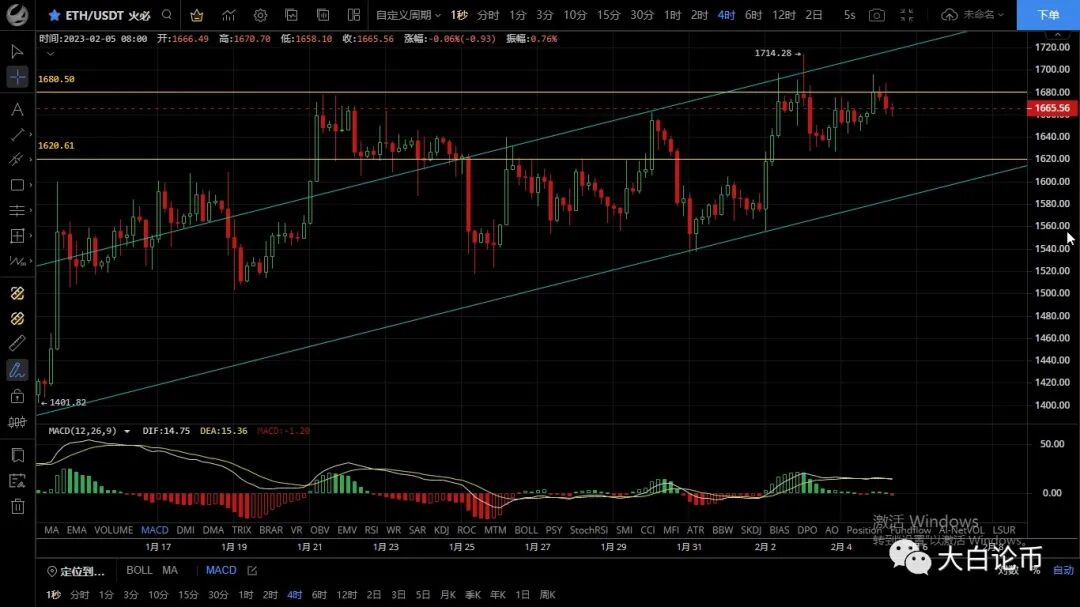 以太坊整体比大饼强势,白盘波动不大,晚间连阳上行最高触及1695一线承压回落,恭喜跟上昨日思路的朋友获利30点,目前币价在1661附近运行,四小时级别从盘面来看行情实体一直未突破1680,前天的文中提过未有效突破1680可逢高做空也反复吃了几波,上方承压明显k线连阴回落,短期受ma14支撑,以太坊结构虽强但1680不有效突破依旧会走回踩,切勿盲目追多,短期来看区间暂时不会被打破,思路上和昨日一致高空低多做短线,上方压制1680-1720,下方支撑1640-1620