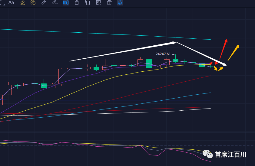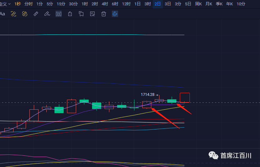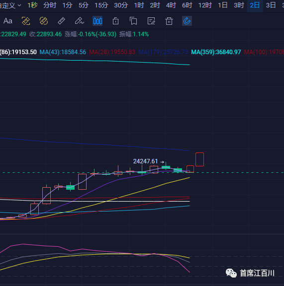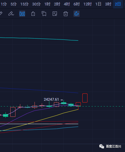 周线是类似并列线,但高低点在同步抬高,43线就在脚下不远处,这个43线可以回踩也可以不回踩,最终本周大概率是周上图类似阳线,阻力主要还是位于26800-27130美金之间。而这个周线级别43线是否回踩,取决于2日线也就是今明两天的玩法。所以某种程度来说,今明两天是绝佳的做多机会和买入机会,不要浪费。