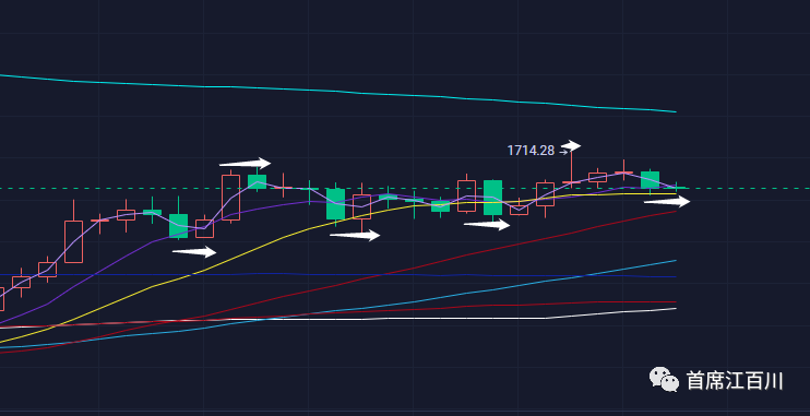 2日线的两种模式:这种为不回踩的模式,因为7线已破,14线就在脚下,可以不回踩。