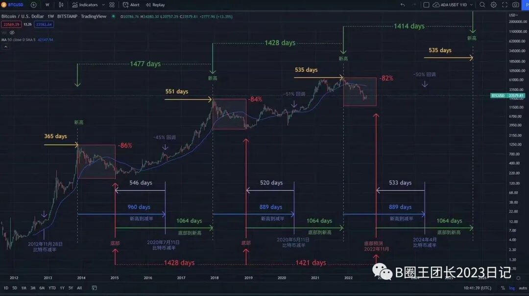所以,不要在意眼前的这点涨跌起伏,在币圈4年周期历史的牛熊长河中,只是沧海一粟,把K线缩小你会发现那点涨跌可以忽略不计,甚至不仔细看根本看不到曲线。