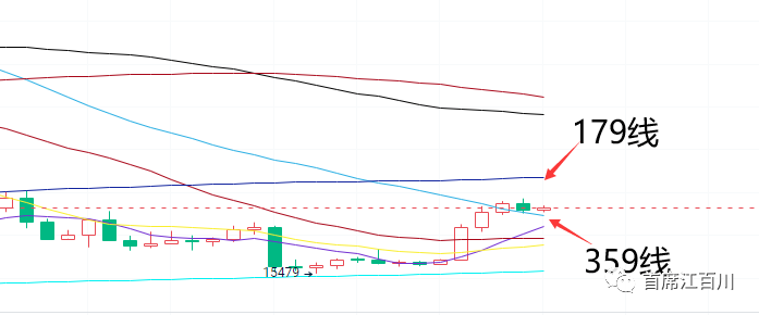 【行情分析】先看周线,周线上对于这种可踩可不踩359一线,主力玩了一种似是而非的回踩方式,就是回踩一点留一点,所以周线上既然做了这种动作,那么剩下的时间就是向上涨的问题了,主要还是看蓝色179一线能否突破,突破则牛市重新开启。
