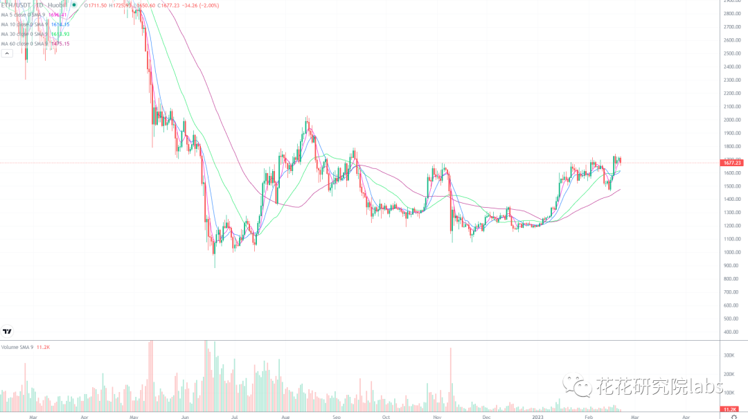 以太坊1700的压力是在是太大了,需要调整一段时间才能突破,整体看涨走势不变,1650以下可以分批补仓。