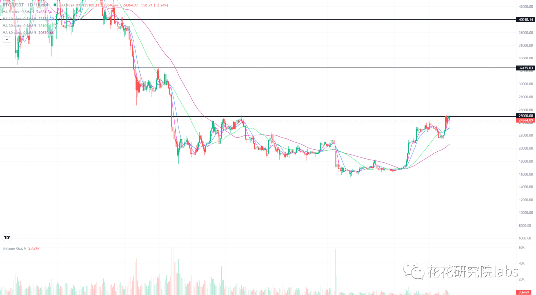 昨天花哥在推特和微博提示了短线风险,今天比特币再次测试25200的压力,结果没有过去,再次冲高回落,迎来了比较大的跌幅,符合我们的短线判断。不过整体的看涨走势并没有改变,比特币建议在23000-24000补仓,只要市场敢跌,你就要敢于分批补仓。这波行情远远没有结束,大家要有耐心和信心。