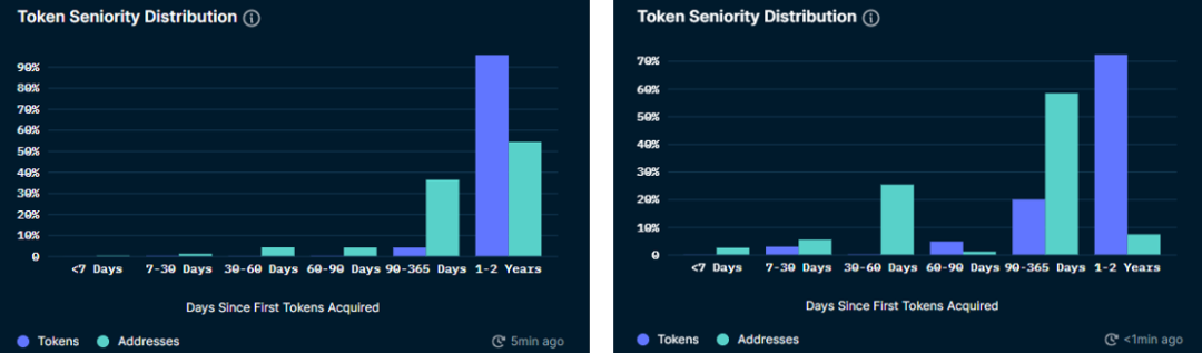 图4-5 GHST持币地址持有天数(左图:以太链;右图:Polygon)