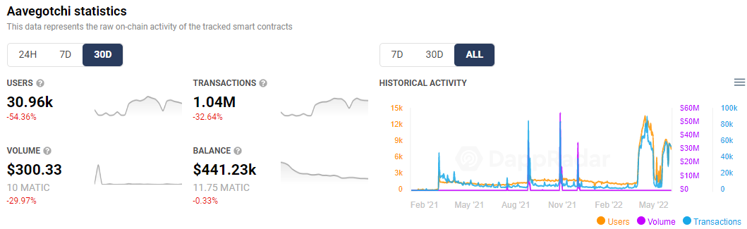 DappRadar数据统计,https://dappradar.com/polygon/games/aavegotchi