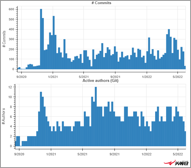 如上图2-1所示,Aavegotchi从上线至今,项目代码提交量频繁,开发稳定。团队开发者长期稳定在4人以上。