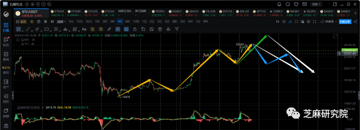 所以有朋友问我,现在看涨的多,还是看空的多,当前位置其实看涨的人会多一点,因为短线合约选择做多肯定合适一些。而且大家都知道,23300不跌破还有上涨机会。而且很多的分析师都认为反弹没结束,还要继续反弹,这种情况下我不知道市场是反其道行之,还是满足大家的预期继续拉盘。