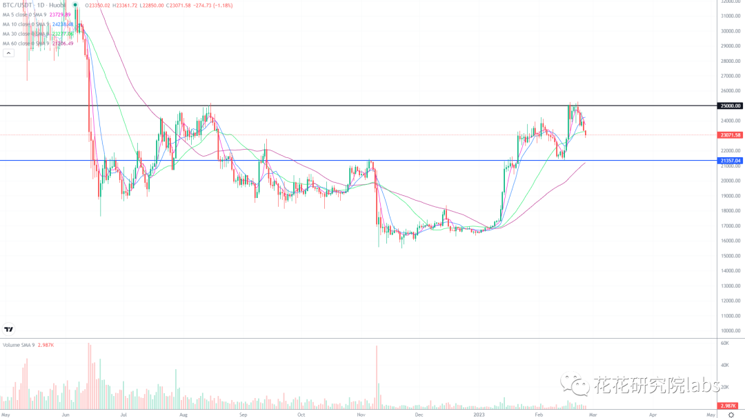 虽然比特币这波回踩的比较深,踩破了23000,不过整体问题不大,23000-24000依旧是第一低吸补仓区间,如果还有子弹的可能放在23000的下方逢低补。整体上不破21350就是看涨走势,预计跌破的概率不大。