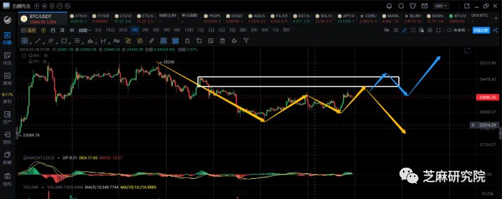 至于当前是否是日线级别的回调,可以继续观察反弹力度,在上周的文章也说了,跌破23300可以明确的是走一笔4h级别的回调,但是要想确认是日线级别的回调,还需要价格跌破22300才行。那目前始终还没有跌破22300,所以当下并不能完全判断,还需根据4h反弹的力度去考虑。