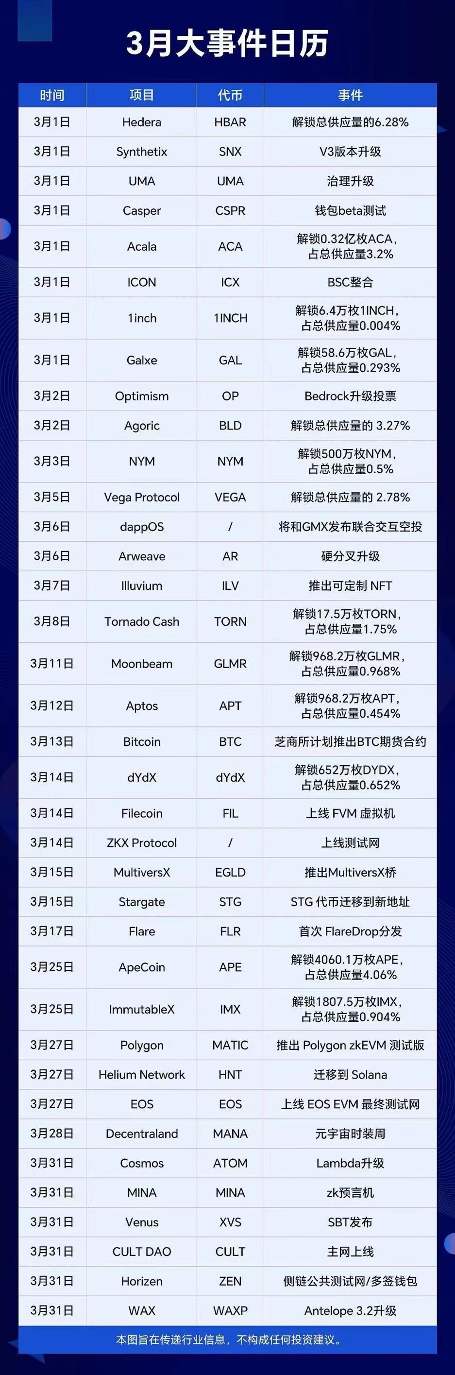 特别需要关注的是以太坊的“上海升级”(将会有大量以太坊解锁),由3月份延后到4月份。