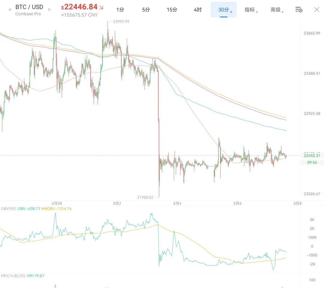比特币今日来看,市场波动率随着横盘时间的推移还在继续下降中,并且山寨币的波动下降的更快一些。波动率持续的下降在一定程度上属于比较良好的调整,有利于市场进一步拉升,但如果长时间且大幅度下降到一定程度后,则会造成量变产生质变坍塌,因此最近一段时间的山寨币市场能不碰就尽量不要去碰,目前之前的阴跌仅仅只是一个开端,尽量选择市场振奋起来之后再考虑布局,这个时候主流币的价值就体现了出来,主流币不动,山寨币阴跌,山寨币阴跌完后波动率继续下降破低点,这有可能是在酝酿下一波山寨币下跌,而在山寨币酝酿下一波的同时,虽然主流币是横盘的状态,但波动率也在跌,只是比山寨币价格支撑上硬一些而已,但也架不住长时间的波动下降,所以也会出现一种情况就是,山寨币提前跌一波,主流币没动,山寨币再跌一波,主流币轻跌,山寨币继续跌,主流币到达临界点被带崩,所以短时间内山寨币虽然已经跌了不少,但从安全的角度来看不像是太好的选择,再加上市场波动率的持续下降会伴随着小级别画门,从目前情况来看只要出现画门基本上都是骗炮,总结下来就是山寨币方面短期内放弃幻想,要买也仅限于主流币方面的大币种,比特币短期下方支撑22000,21500。