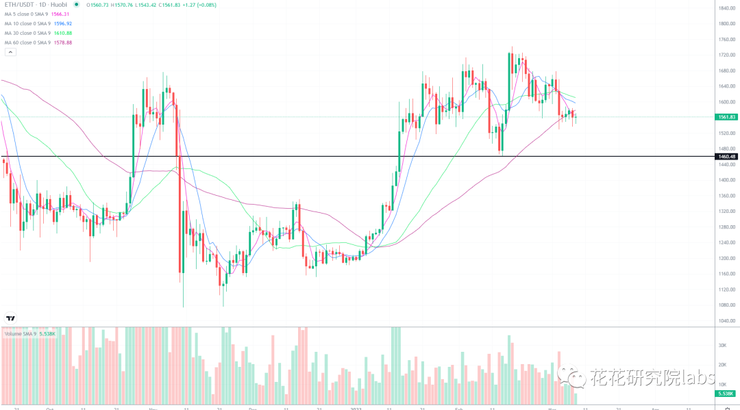以太坊目前联动大盘为主,还是调整走势,1500-1600这个区间可以低吸,跌破1460止损。