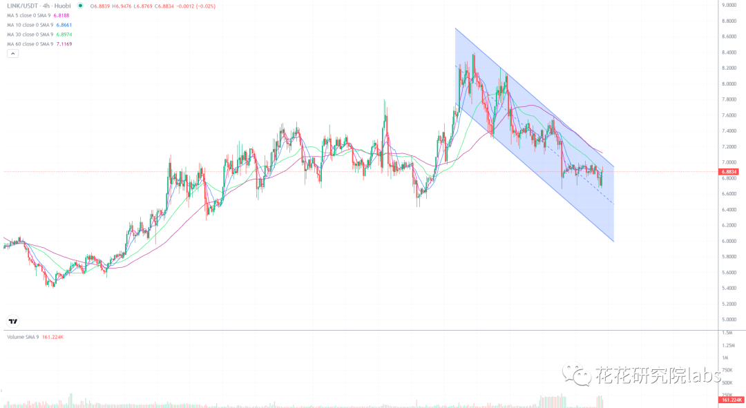 link今天的走势稍强一些,但是还没有突破下降趋势通道,突破才会有质的飞跃。